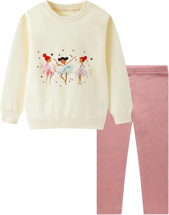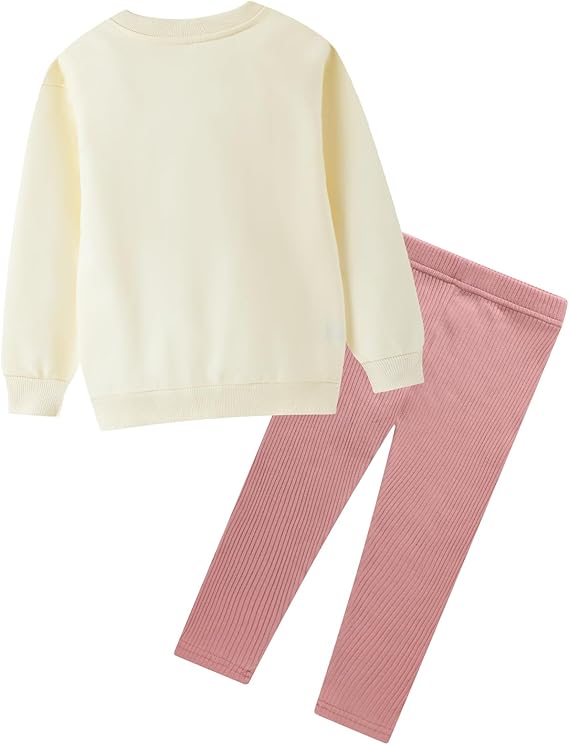Toddler Girl Fall Outfits Clothing Pants Set Sweatshirt Cotton Strench Leggings Playwear Sets(offwhitedance)