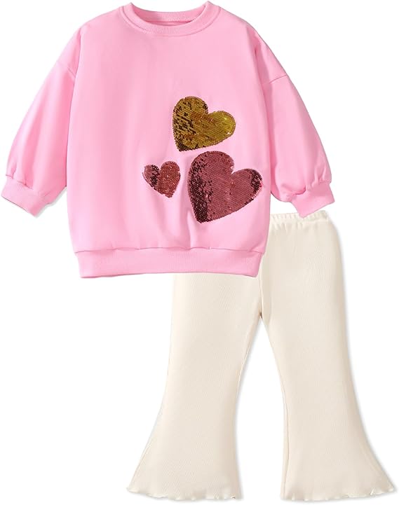 Toddler Girl Fall Outfits Clothing Pants Set Sweatshirt Cotton Strench Leggings Playwear Sets(pinkscalesheart)