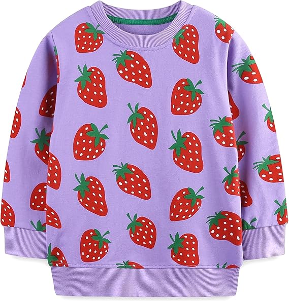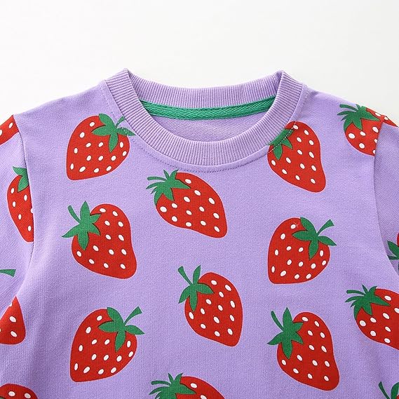 Toddler Girl Sweatshirt Clothes Outfit,Cotton Crewneck (Purple Strawberry)