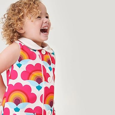 Toddler Girls Clothes Cotton Short Sleeve Casual Girls Dresses (Bright Rainbow Print)