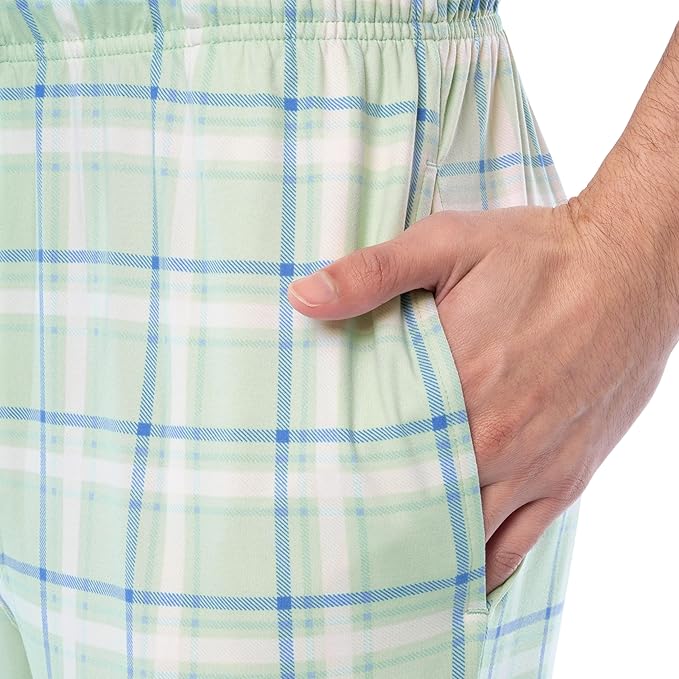 Van Heusen Men’s Jersey Knit Light Green Plaid Sleep Pant