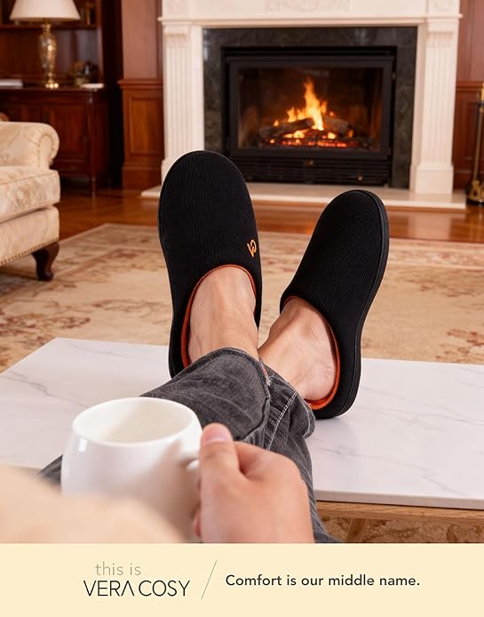VeraCosy Men’s Two-Tone Memory Foam Orange House Slippers