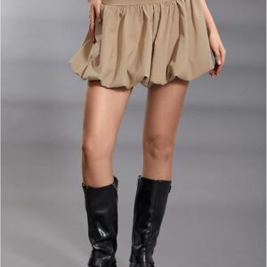 Verdusa Women’s Bubble Skirt Elastic High Waisted Puffy Skorts (Khaki Solid)
