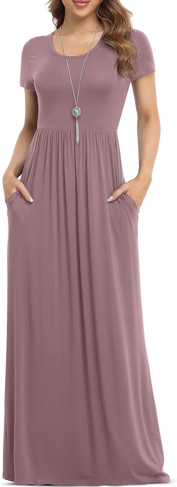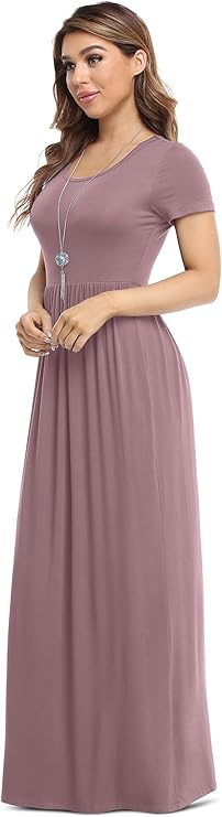 VIISHOW Women’s Short Sleeve Loose Plain Maxi Dresses (Mauve)