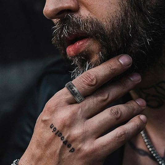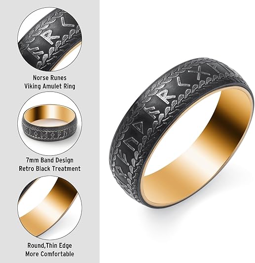 • Viking Rings for Men Women: Unique viking ring with norse runes; In norse mythology,runes are not only symbols,but also believed to bring luck,power,protection,hope,happiness,victory etc; Wearing it as amulet ring,it will bring good luck for wearer.