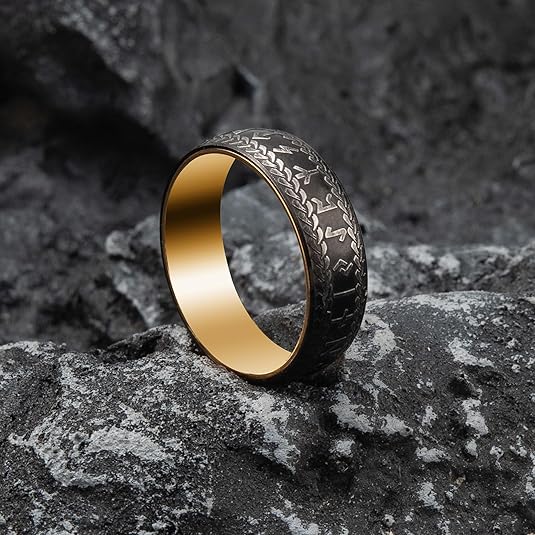 Viking 7mm Runes-Two Tone Rings for Men