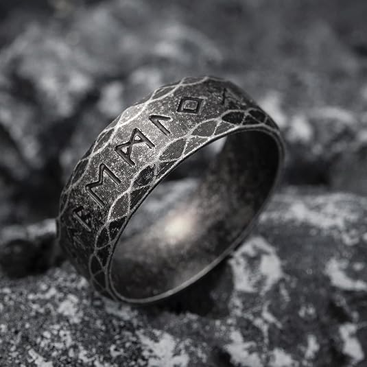 • Viking Rings for Men Women: Unique viking ring with norse runes; In norse mythology,runes are not only symbols,but also believed to bring luck,power,protection,hope,happiness,victory etc; Wearing it as amulet ring,it will bring good luck for wearer.
