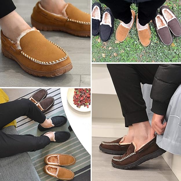 • Indoor & Outdoor Slippers: Moccasin slippers for men can be worn both indoor and outdoor. Designed with the comfort of a slipper, but the durability of a casual shoe.