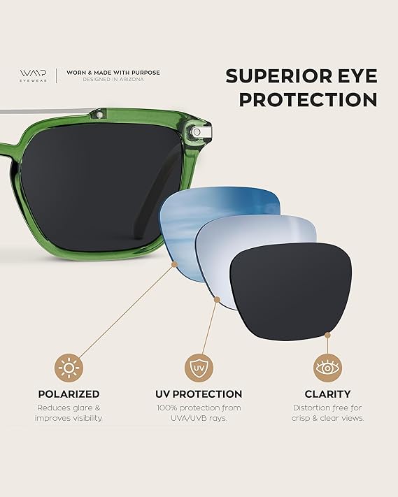 - 100% UVA/UVB Protection + Accessories: Safeguard your eyes from UV rays with 100% UVA/UVB protection, and keep your sunglasses in pristine condition with the included microfiber pouch that doubles as both a cleaning cloth and storage case.