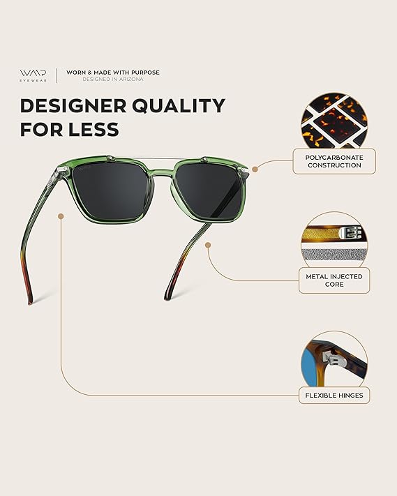 - Affordable Designer-Quality Eyewear: Combining premium, designer-quality frames with functionality, WMP’s bold double-metal bridge sunglasses offers a perfect balance of style, durability, and affordability—making them a go-to accessory for men who value both performance and price.