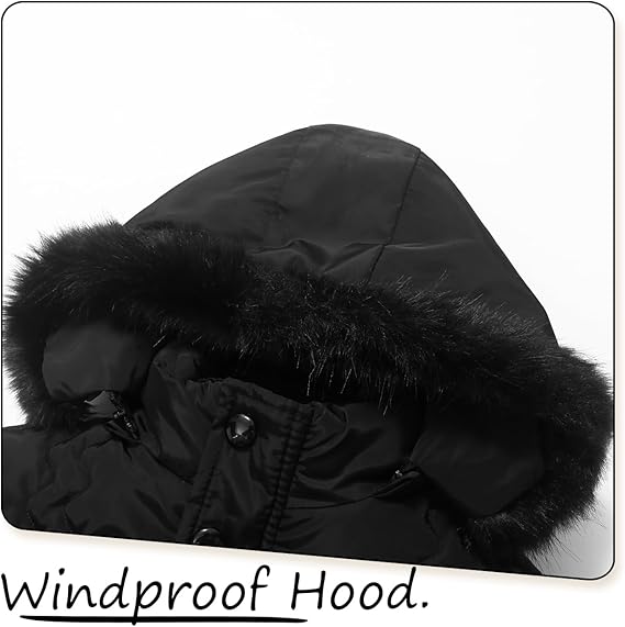 Winter Jacket Coat with Fur Hood Size 4-10 Warm Fleece Lined Puffer Outwear(Black)