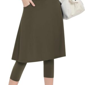 Women Athletic Knee Length Skirts with Leggings,Yoga Skorts Leggings( Army Green)