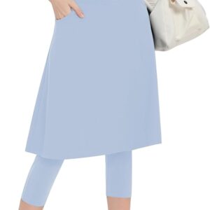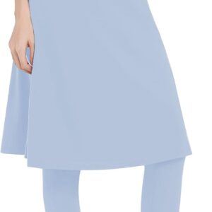 Women Athletic Knee Length Skirts with Leggings,Yoga Skorts Leggings(Lake Blue)