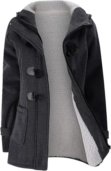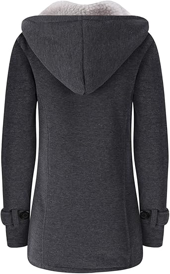 Be the first to review “Womens Fashion Horn Button Fleece Thicken Coat with Hood Winter Warm Jacket (Grey)”