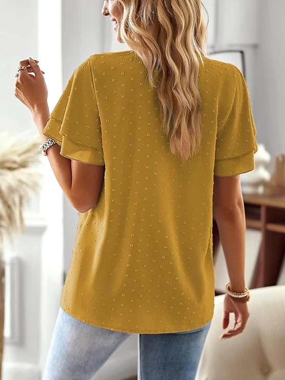 Womens Tops Butterfly Sleeve V Neck Blouses for Women( Yellow)