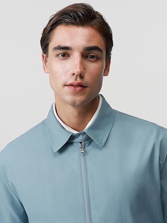 Luxurious Fabric Technology: Crafted from 100% polyester with high-end custom yarns, this windbreaker mimic the softness of cotton while maintaining technical durability. The advanced yarn structure creates a smooth surface texture that feels ultra-gentle against the skin—ideal for all-day comfort