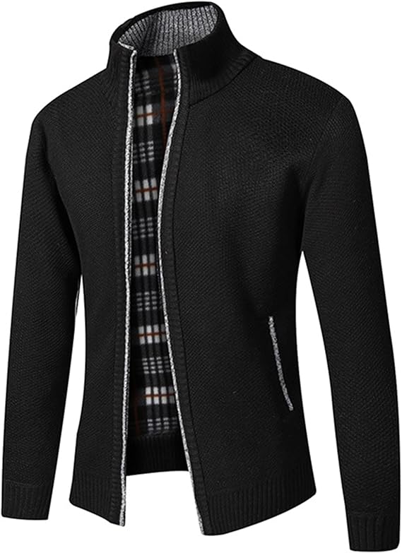 Yeokou Men’s Casual Slim Full Zip Thick Knitted Cardigan Black Sweaters with Pockets