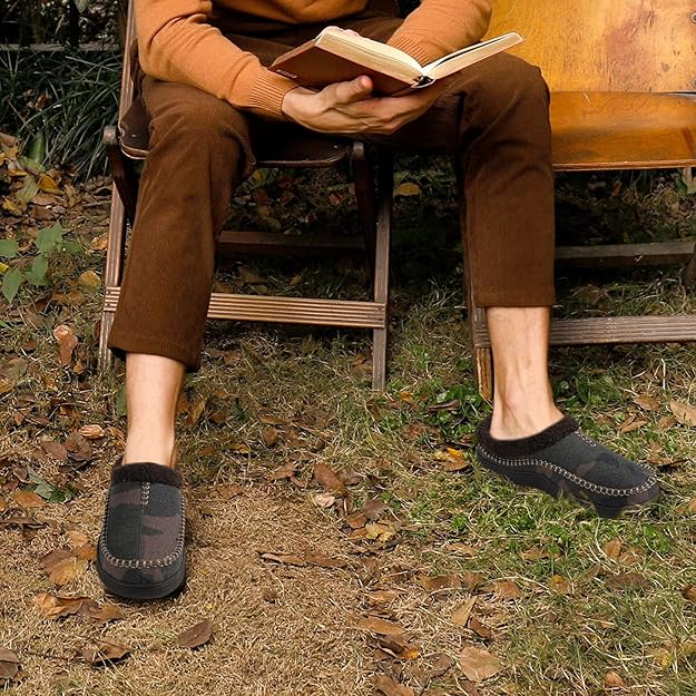 - A pair of classic moccasin slippers. Thick plush lining can wrapped your foot in comfy warmth on chilly days, also add a luxurious look and feel. At the same time, we have added styles suiable for all seasons to satisfy different requirement.